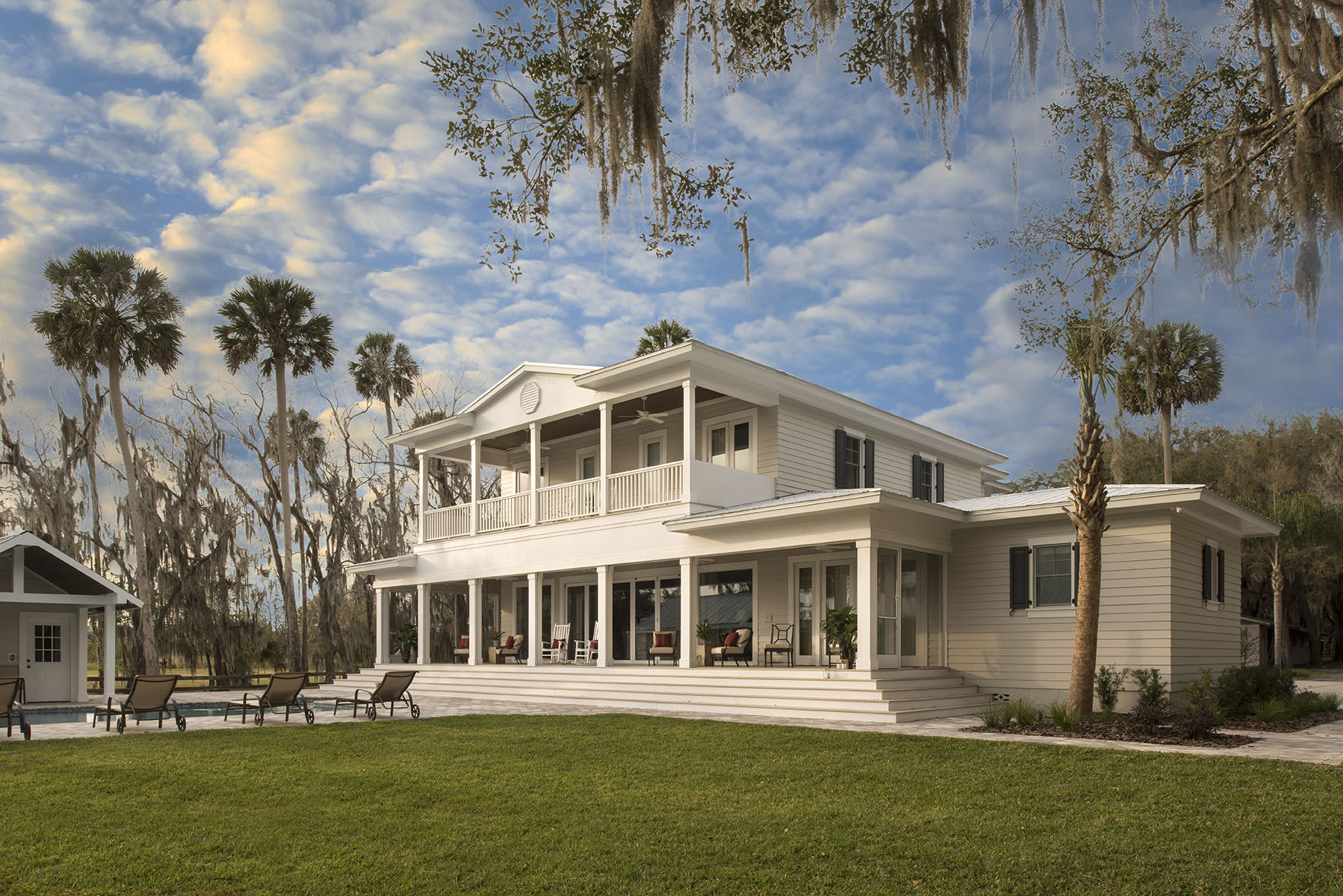 Nestled on the shore of the St. Johns River, there is a magnificent, transformed pool home that was envisioned by the Homeowner. What started as an interior remodel shifted to more of a whole house rebuild/restoration after weighing the opportunities to start over with a completely new interior floorplan versus conceding to design conflicts the existing layout presented. The American Institute of Building Design (AIBD) recognized the project with a 2020 Grand ARDA (American Residential Design Award). The home was also recognized at the Southeast Builders Conference at the Aurora Awards for the Best Remodeled/Restore Single Family Home.