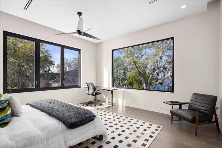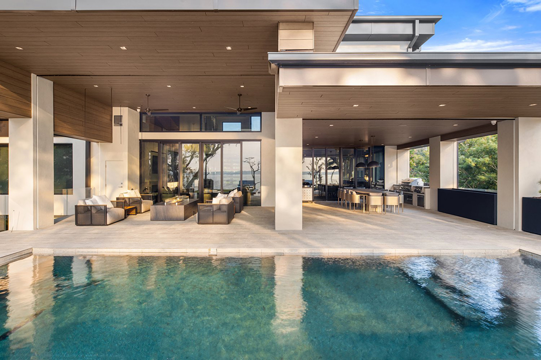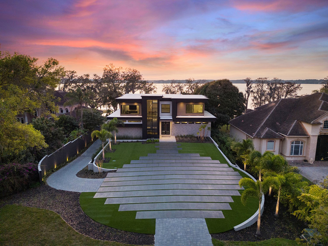 This Floridian jewel is located a short distance from downtown Orlando, Walt Disney World, and is adjacent to Windermere. Situated on the Butler Chain of Lakes, the home is just South of the world-famous Bay Hill golf course and features sunset and evening Disney fireworks show views over Lake Sheen. The luxury home, on a 4.5-acre site, consists of 7,461-sf of enclosed living area, including four bedrooms, four full baths, and two half baths. The basement and two living levels above can be accessed by an elevator. There is also a four-car garage, a 2,000-square-foot lakefront patio, and a pool with a 2,450-sf pool deck. In addition to the luxurious finishes of this estate, there are some unique technical attributes, including extensive home automation systems, advanced energy efficiency components, leading-edge building products, and a wide range of home accessories designed to make this home more like living in your own private resort.